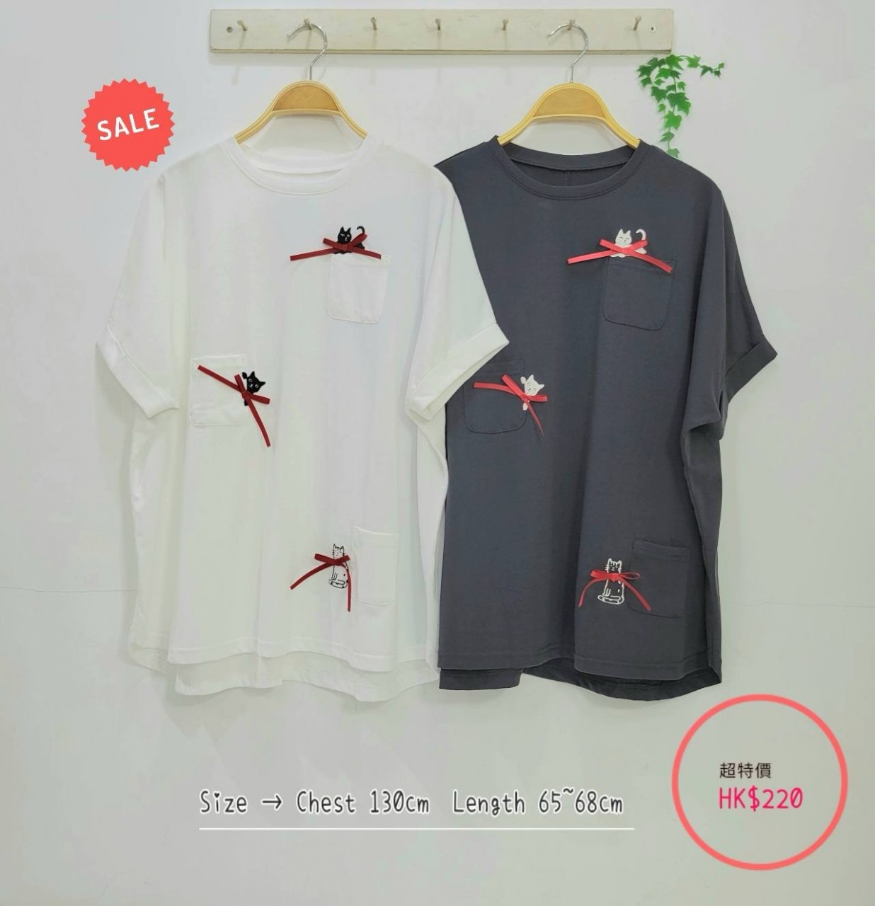 日本2色立體蝴蝶結 x cat cat圖案棉質 Top ✿₊⁺